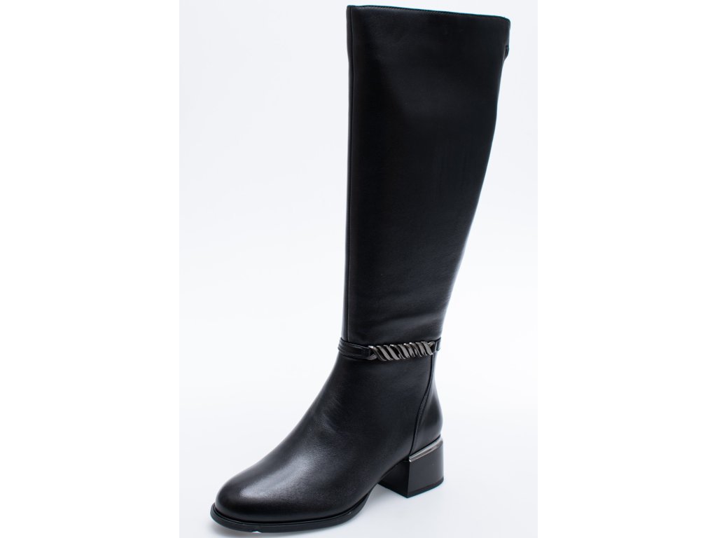 Klasické černé kozačky Epica s elegantní sponou a nízkým pohodlným podpatkem.
