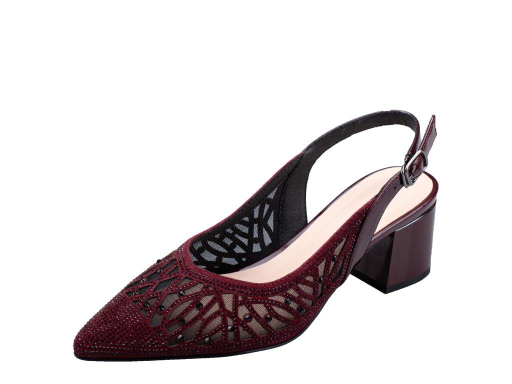 Kožené letní střevíčky značky Epica s lichotivým střihem v bordó barvě s efektním zdobením z kamínků. Touch-it stélka.