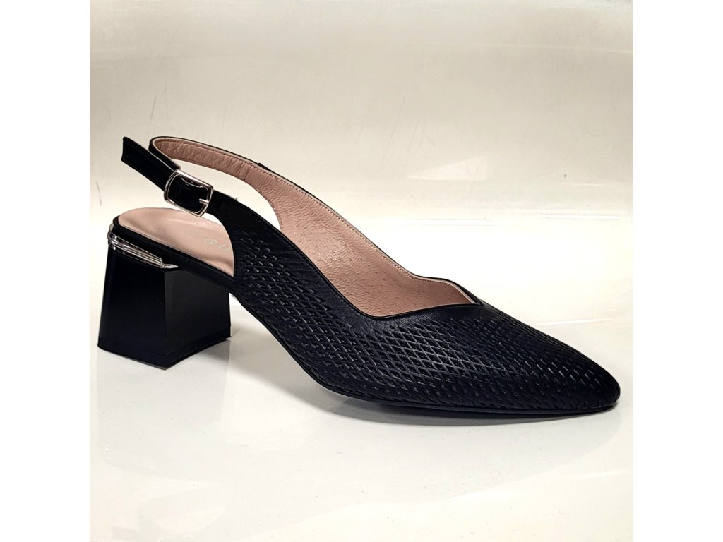 Kožené letní  baleríny na podpatku značky Guero s lichotivým střihem v základních barvách bílé a černé. Touch-it stélka.