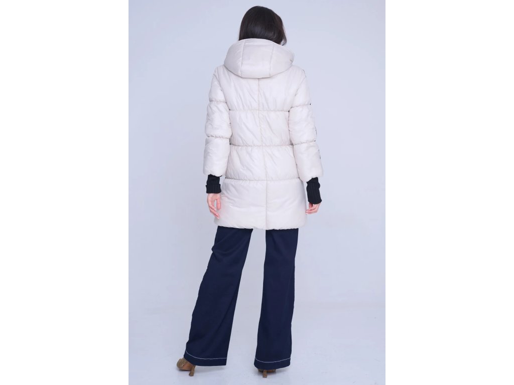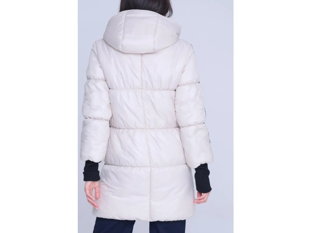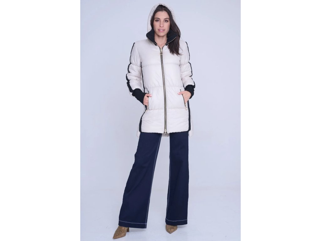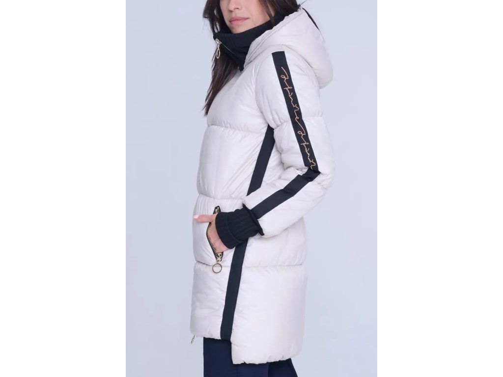 Luxusní zimní bunda v délce pod zadeček. Na rukávech efektní lampas s motivem Infinite ze zlatých crystalů Preciosa. Zlaté doplňky. Žebrové náplety ve výstřihu a v délce rukávů. Uvnitř bundy hřejivé, měkké rouno. Příjemné na nošení. Tuto bundu si obléknete a nebudete chtít sundat.