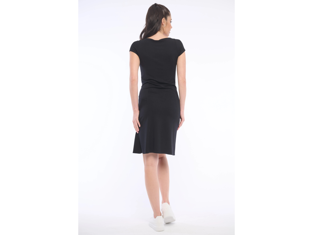 Pohodlné šaty INF vhodné na každou příležitost ozváštněné průstřihy v oblasti ramen. Luxusní doplněk tvoří nápis z crystalů Preciosa.