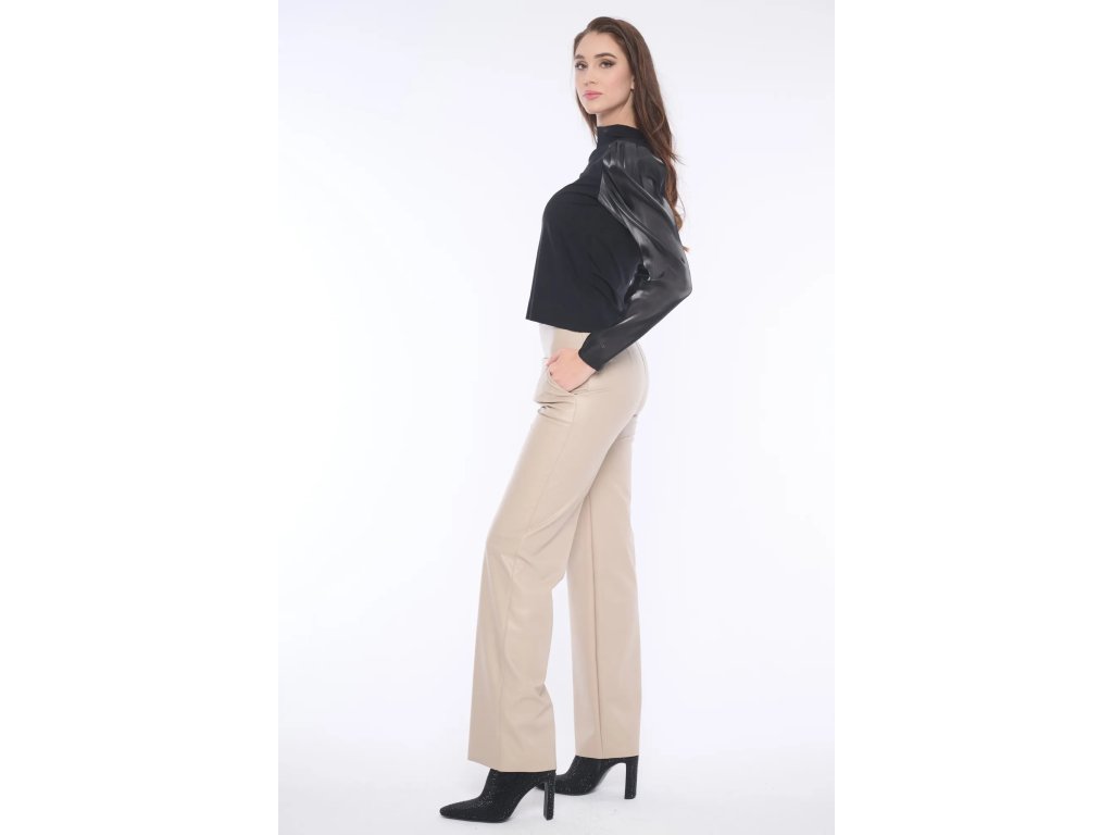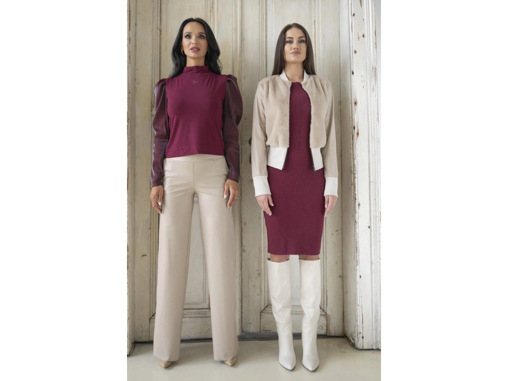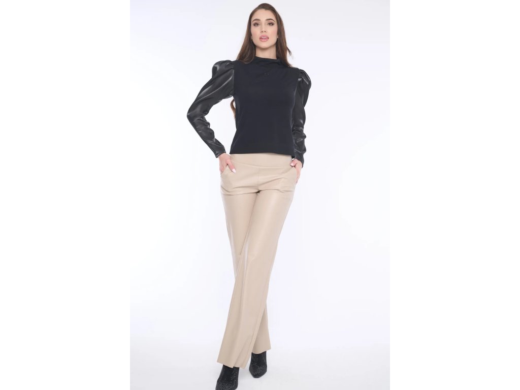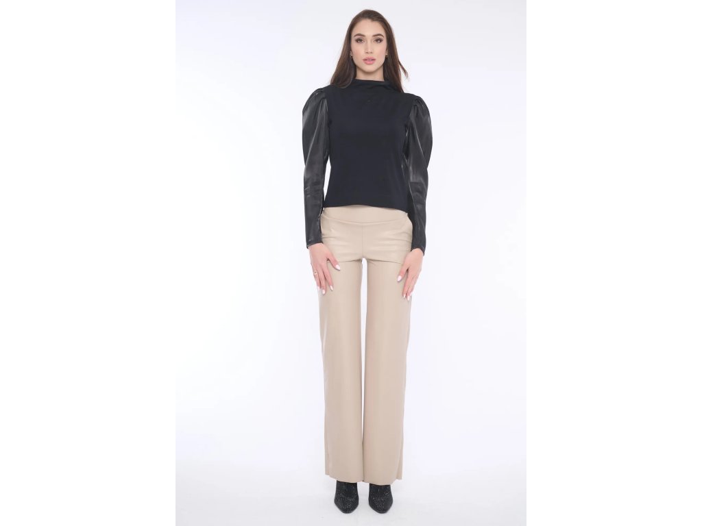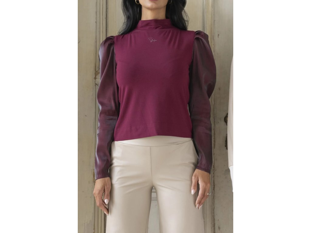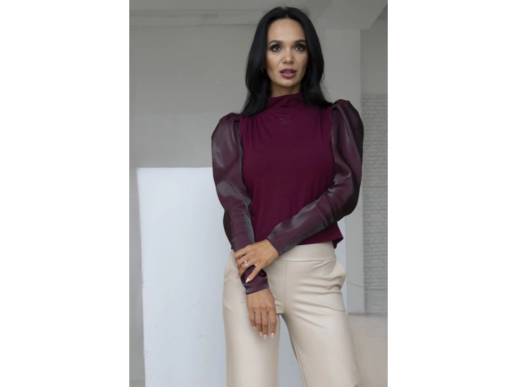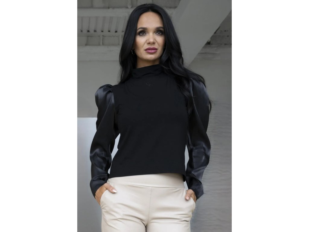 Elegantní triko INF se stojáčkem s nabíranými rukávy z luxusní lesklé látky doplněné jemnými crystaly Preciosa.