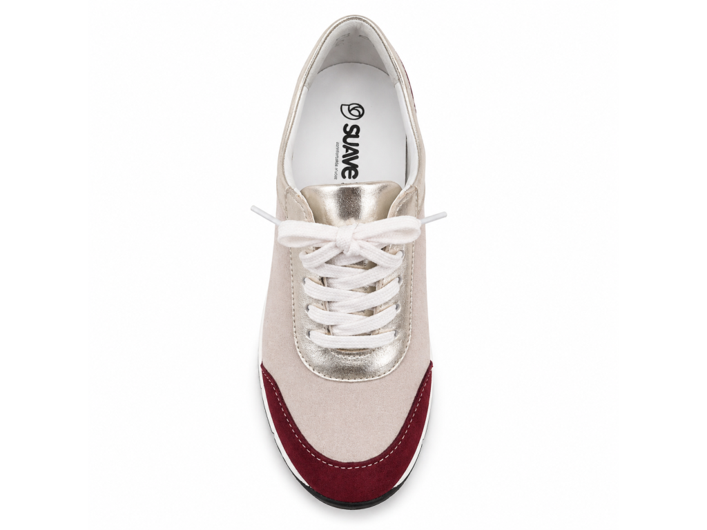 Barva: 1) bílá v kombinaci šalvějové a pudrové (hladká kůže), 2) béžová v kombinaci se stříbrnou a vínovou (broušená kůže)